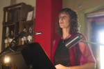 Birte Bornemann trug mit angenehmer Stimme, malerischer Mimik und Gestik Teile aus dem Roman vor. Der Gitarrist Volker Höh ergänzte den Wortvortrag mit einfühlsamen Tango-Melodien auf seiner 1925 gebauten Gitarre, der "ältesten Dame im Saal" und begleitete Bornemanns Gesang.