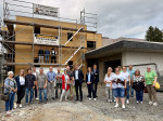 Projektleiter Jurek Weber informierte über den aktuellen Stand der Bauarbeiten. Die Wände und Decken in Holzständerbauweise sind bereits fertiggestellt. Als nächstes werden Fenster und Türen eingebaut, bevor der Innenausbau beginnt. Weber dankte allen beteiligten Firmen für ihre zuverlässige Arbeit.