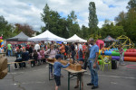 Überall schwirrten riesige Seifenblasen durch die Gegend und die Clown-Hüpfburg bescherte den Kleinsten den größten Spaß. Die Förderung von Kreativität kam auch nicht zu kurz, denn einige Stationen boten die Gelegenheit, zu malen und zu basteln.