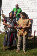 Hingucker und unerschöpfliche Informationsquelle für Geschichtsbewusste war die antik gewandete IG Zugmantel-Cohorte mit dem Symboltier Luchs aus Taunusstein. Sie ließen mit ihrem römisch-germanischen Zeltlager das Leben am obergermanischen Limes in der Zeit zwischen dem zweiten und der Mitte des dritten Jahrhunderts nach Christus anschaulich werden. Zenturio Ursus Treverus und seine Frau, die Händlerin Lea, berichteten vom Leben der Römer und Barbaren beiderseits des Grenzwalls. Die beiden Limes Cicerones sind Verfechter der Wiederansiedlung des Luchses im Taunus und häufig als Römer-Erklärer in Schulen und Kindergärten unterwegs. Sie ließen in Hillscheid Kinder in die Uniform mit Kettenhemd, Helm und Schild schlüpfen. Der Zenturio wusste auch, dass bei Wiesbaden syrische Bogenschützen den römischen Soldaten das Bogenschießen beibrachten. Überhaupt machten sich die Römer die Kenntnisse der Menschen im gesamten Imperium Romanum zunutze.
