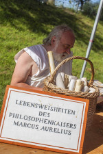 Weitere Informationsquellen boten die Generaldirektion Kulturelles Erbe Rheinland-Pfalz gemäß dem Motto "Wir machen Geschichte lebendig", das Limeskleinkastell Pohl, das Kastell Rigomagus/Remagen, die Hochschule Bonn-Rhein-Sieg, der Verein Deutsche Limesstraße und die Limes-Cicerone von Rheinland-Pfalz. Cicerone Manfred Knobloch hatte mit einigen Helfern über ein Jahr lang die Veranstaltung geplant und vorbereitet. Diesen engagierten Männern und den zahlreichen Helfern dankte der Bürgermeister. Er zitierte Cicero: "Nicht das Erbe der Völker, sondern der Kinderwille gestaltet die Zukunft". htv