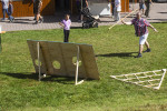 Dafür waren etliche Stationen eingerichtet, an denen Kinder auf Schatzsuche gehen, ein Wildschwein erlegen, mit Pfeil und Bogen schießen, mit Zunder und Feuerstein Feuer entfachen, zwischen Mühlsteinen Mehl mahlen, auf einem Muli reiten, römische Spiele spielen, mit einer Fotobox Selbstportraits erstellen, am Abacus rechnen und sich schminken lassen konnten. Ein Shuttle-Bus brachte Besucher kostenlos zum rekonstruierten Kleinkastell bei Hillscheid.