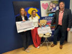 Zusätzlich organisierten die Azubis der WW-Bank im Rahmen der Handwerks-Challenge einen Getränkestand, dessen Erlös von 1.300 Euro ebenfalls an den Hospizdienst ging. Julia Görg von der WW-Bank und Michael Braun von der Kreishandwerkerschaft überreichten die Spende an Annika Klein von den Deutschen Kinderhospiz Diensten.