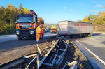Sattelzug durchbricht Mittelschutzplanke auf der A3