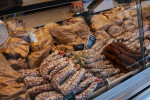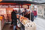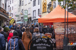 Vor den Läden lockten Wühlkörbe mit Schnäppchenpreisen, Hinweise auf „Sale“ und Sonderaktionen die Käufer an. Dazwischen ließ der Duft frisch gebrannter Mandeln, der Waffel- und Crêpes-Bäckereien, von Kaffee, Glühwein und Kinderpunsch das Wasser im Mund zusammenlaufen. Das Nahrungsangebot war schier unendlich: Winzerwein, türkische Spezialitäten, Champignons aus der Großpfanne, Käse- und Wurstspezialitäten aus der Region und aus Österreich, Reibekuchen, Baumstriezel, Brezeln, Brot und Kräbbelchen, Grillhähnchen, Fritten, Honig aus dem Westerwald, Magenbrot und Lebkuchen, Balkan-Feinkost, Bonbons, Pizza, Fleischspieße, Wildspezialitäten, Nüsse, Zuckerwatte, Secco und Liköre, Honig, Gewürze und Tee, Würste und Käse aller Art. Ein Händler hatte eine spannende „Käse-Wundertüte“ im Angebot. Öle und Dips konnten direkt am Stand verkostet werden.