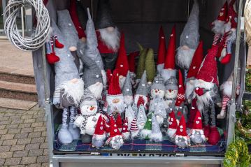 Neu auf dem Markt waren Skater mit Zubehör und Trainingsinformationen, außerdem Metallfiguren für den Garten. Zwischen Obst vom „Billigen Jakob“ und Kleidung aller Art fand man jahreszeitlich vorausschauende Angebote wie Weihnachtsdeko aus Keramik und Holz, Kränze, Weihnachtskarten, vielteilige Krippen und Wichtelzubehör und dekorative Vogelhäuser, sogar mit funktionierender Uhr, vielleicht, damit die Piepmätze sehen, wann Futterzeit ist. htv
