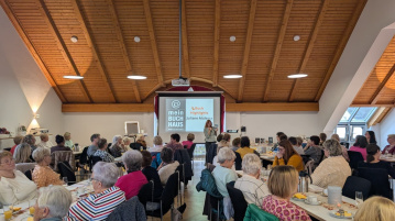 Besonders emotional wurde es beim Beitrag von Juliane Malessa, Inhaberin der Buchhandlung meinBuchhaus. Seit vielen Jahren bereicherte sie das Frauenfrühstück mit ihrer warmen Art und inspirierenden Buchempfehlungen. Dieses Jahr nahm sie zum letzten Mal teil, da ihre Buchhandlung schließen wird. Gemeinsam mit den Teilnehmerinnen entstand ein würdevoller und herzlicher Abschied. "Wir sind dankbar für die schöne gemeinsame Zeit und die vielen bereichernden Momente, die Juliane mit uns geteilt hat", so Jacqueline Schlotter.