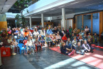 Schätzungsweise 40 Kinder suchten die Filiale in Altenkirchen auf, natürlich in Begleitung ihrer Eltern und zum Teil auch der Großeltern. Vor der liebevoll aufgebauten Puppentheaterbühne hatte die SKWWS Kinderstühle und Sitzkissen auf dem Boden bereitgestellt, auf denen die Kinder bequem dem Theaterstück folgen konnten. Hinter ihnen machten es sich die Erwachsenen auf normalen Stühlen bequem und hatten dabei die Kleinen im Blick.