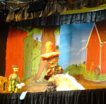 Bevor die Aufführung begann, begrüßte Errol Barber Kinder und Erwachsene und testete gleich zu Beginn die Lautstärke der Kinder, wenn sie kreischen. Dann wurde der Vorhang der Puppenbühne geöffnet und die Vorführung von "Wie Findus zu Pettersson kam" begann.