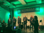 Es schloss sich der erste Musik-Act des Abends an. Die HarmoniX, eine Chorformation aus dem Westerwald, übernahm gegen 18.30 Uhr die Bühne. Gleich mit dem ersten Lied gelang es dem Ensemble, bestehend aus sechs Sängerinnen, vier Sängern und Pianist Volker Siefert, das Publikum mitzuziehen. John Farnhams Klassiker "You‘re the Voice" steht schließlich nicht umsonst auf der Setlist diverser Chor- und A-cappella-Künstler. Gut eine Stunde präsentierten die HarmoniX ein Potpourri aus modernen und klassischen Songs aus diversen Genres. Darunter: "Million Dreams", "Circle of Life", "September" oder auch "Music", was den Abschluss darstellen sollte. Nach lauten "Zugabe"-Rufen fand sich die Gruppe dann aber doch noch einmal auf der Bühne ein. Mit dem Hit "Human" beendeten sie ihren Auftritt dann final und gaben zur Eröffnung des Buffets wieder an die Moderatoren ab.