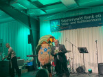 Nach der Ausrufung des "Abends, an dem Engagement sichtbar wird", war es an der Zeit, dem Hauptsponsor des Vereins, der Westerwald Bank, ein paar lobende Worte mit auf den Weg zu geben. Diese quittierte das in Person von Benjamin Brot sogleich mit einem Scheck über 5.000 Euro für zukünftige Projekte. In seiner Dankesrede ehrte Brot das Engagement von Wäller Helfen, freute sich über die langjährige Partnerschaft und gab als Motto seines Unternehmens das Leitbild "Unsere DNA: Hilfe zur Selbsthilfe" an.