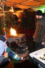 Weihnachtliches und Winterliches wie Handschuhe, Mützen, handgestrickte Socken, Felle und Kleidung aus Fell, kunstvoll gefertigte Sperrholz-Weihnachtsdekoration, Kerzen und Advents-Dekoration und personalisierte Weihnachtskugeln konkurrierten mit Holzarbeiten, Gürtel und Taschen, Plüschtieren, Düften und Raumölen, Kinderkleidung, Taschen und Kissen, dekorativen Woll-Kreationen, Asia-Kunst und Schmuck um die Gunst der Käufer. Während die erwachsenen Besucher an den Ständen mit Nützlichem und Schönem nach Geschenken Ausschau hielten, konnten die Kleinen auf einem bunten Kinderkarussell Runden drehen oder im Zelt der Märchenerzählerin Stockbrot über dem Lagerfeuer backen. Feurig ging es auch beim Schmied neben der Bühne zu, der live sein Handwerk vorführte.