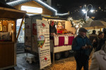 Das Angebot war wieder reichhaltig: Neben mehreren Glühweinangeboten, heißem Apfelpunsch, Kakao und Kaffee lockten Würste vom Grill, Langos, Waffeln, Crêpes, Spätzle, Backwaren, Dampfnudeln, Falafel und Schokofrüchte. Zum Mitnehmen hatten Marktbeschicker duftende Lebkuchen, gebrannte Mandeln, Baumstriezel, Bonbons, Mittelmeer-Spezialitäten, Gelees und Liköre dabei.