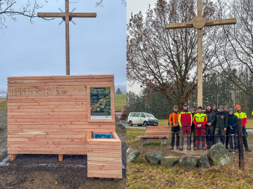 Am 5. Dezember hob die Forstspezialmaschine das etwa 650 Kilogramm schwere Kreuz an seinen alten Platz. Um 10.30 Uhr waren Bürgermeister Stefan Leukel, Ortsvorsteher Detlef Nink, Pfarrerin Julia Weiß und Pfarrer Benedikt Wach vor Ort, um gemeinsam mit den Auszubildenden und Fachlehrern die Fertigstellung zu feiern. Eine ökumenische Einweihung rundete das Ereignis ab. PM/Red