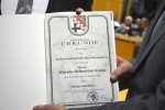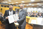 Anschließend folgte die Antrittsrede des neuen Bürgermeisters, Marvin Kraus, der in Bad Marienberg kein Unbekannter ist, denn nach seiner Tätigkeit in der CDU-Fraktion im Landtag von Mainz, war er in der VG-Verwaltung tätig und zuletzt als Erster Beigeordneter der VG Bad Marienberg. Auch Kraus wurde mit starkem Beifall und Standing Ovations belohnt. Dann wurde die Zeitenwende vollzogen, als Kraus Heidrich offiziell zum 31. Dezember 2025 in den Ruhestand verabschiedete. Der noch amtierende Bürgermeister Heidrich, verpflichtete und vereidigte dann Kraus zum neuen Bürgermeister der Verbandsgemeinde.