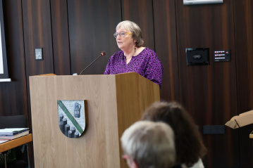 Zunächst aber berichtete Beate Ullwer letztmalig über ihre Tätigkeit als Gleichstellungsbeauftragte des Westerwaldkreises. Seit Mai 2001 bekleidet sie diese Funktion und wird im Februar in den Ruhestand eintreten. Insbesondere das Thema "Gegen Gewalt an Frauen" habe ihr immer am Herzen gelegen. In ihrer Rede erinnerte sie an zahlreiche Aktionen, exemplarisch nannte sie die Brötchentütenaktion "Gewalt kommt mir nicht in die Tüte", und wandte sich an die vielen Akteure und Organisationen, mit denen sie im Laufe der letzten zwei Jahrzehnte zusammengearbeitet und unterschiedliche Themen vorangebracht hatte. Landrat Achim Schwickert dankte Beate Ullwer für ihren Bericht und die geleistete Arbeit in den vergangenen 24 Jahren. Dem schloss sich Kreistagsmitglied Eva Ehrlich-Lingens, die im Namen aller Kreistagsfraktionen sprach und eine lange Wegbegleiterin Ullwers war, an. Mit zahlreichen Veranstaltungen habe sie die Anliegen der Gleichstellungsstelle stets in die Öffentlichkeit getragen und die Gleichstellungsarbeit im Westerwaldkreis maßgeblich geprägt.