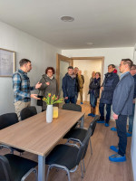 Jurek Weber, Projektleiter, berichtete über den Bau, der auf Nachhaltigkeit setzt. Photovoltaik-Anlagen und eine Wärmepumpe sorgen für eine energieeffiziente Versorgung. Der Neubau aus Holz fügt sich harmonisch in den modernisierten Bestandsbau von 1978 ein und bietet rund 500 Quadratmeter Wohnfläche. Dank ging an Architekt Peter Frensch für die Zusammenarbeit.