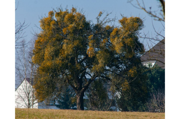 Gerade im Winter treten Misteln deutlich in Erscheinung. Nachdem die Blätter der Obstbäume abgefallen sind, sind die kugelförmigen Mistelbüsche leicht zu erkennen. Häufig zeigt sich ein so starker Befall, dass die obere Kronenhälfte nahezu geschlossen wirkt. Diese Bereiche sind für die Obstproduktion meist bereits verloren, und nicht selten stirbt der Baum wenige Jahre später vollständig ab.