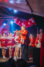 Malberg. Die Prunksitzung der KG „Rot-Weiss“ Malberg fand am 7. Februar um 19.11 Uhr im Festzelt auf dem Festplatz statt. Bereits ab 18.00 Uhr war Einlass, zahlreiche Besucher nutzten die Gelegenheit, sich frühzeitig einen Platz zu sichern. Zwar zeigte sich das Zelt zu Beginn etwas leerer als in den Vorjahren, der guten Stimmung tat dies jedoch keinen Abbruch. Die Besucher erschienen in zahlreichen fantasievollen Kostümen, wobei Rot und Weiß – passend zur Karnevalsgesellschaft – nicht nur bei der Kleidung, sondern auch in der Dekoration deutlich dominierten.