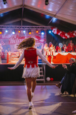 Im Anschluss präsentierte Solomariechen Anna-Lena Nolden ihr Können, bevor mit dem Gardetanz der Mariechengarde ein erster tänzerischer Höhepunkt des Abends folgte. Der energiegeladene Auftritt mit verschiedenen Tanzstilen, akrobatischen Elementen und zahlreichen Spagaten fesselte das Publikum von Beginn an. Ein fester Bestandteil des Programms war auch der Auftritt von Prinzenbegleiter Thomas „Sgodda“, bevor die Tanzgruppe Rot-Weiss mit ihrem Gardetanz die Bühne übernahm. Mit „Mariechen in Rente 7.0“ stand anschließend ein Programmpunkt auf dem Plan, der ebenso zur Vielfalt des Abends beitrug wie der spannende Showtanz der Mariechengarde.