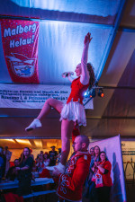 Musikalisch begleitet wurde die Sitzung unter anderem von der Bindweider Bergkapelle, die nicht nur bei einzelnen Programmpunkten unterstützte, sondern auch beim neuen Sessionslied eine tragende Rolle spielte. Die Musiker gehören seit Jahren fest zum Malberger Karneval und wurden entsprechend herzlich aufgenommen. Ein Höhepunkt des Abends war der gemeinsame Gesang des neuen Songs „Malberg Partyzeit“. Die Liedtexte lagen auf den Tischen aus, sodass das gesamte Zelt an der Seite des Prinzenpaares mitsingen konnte. In einem Auszug heißt es darin: „Es ist soweit, wir sind bereit, jetzt ist wieder unsere Partyzeit, zusammen wolln wir feiern, kommt, seid all dabei.“