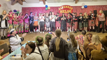 Ein unerwarteter Höhepunkt war der Sketch "Auf dem Bürgermeisteramt", bei dem tratschende Mädels im Wartezimmer des Alpenroder Rathauses das Jahr im Dorf humorvoll Revue passieren ließen. Die Kostüme waren treffend gewählt, sodass der parodierte Bürgermeister seinem Vorbild zum Verwechseln ähnlich sah.