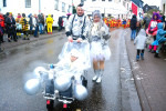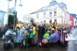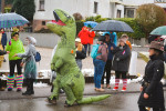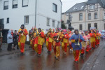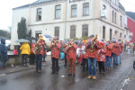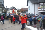 Als der Zug sich pünktlich um 14.11 Uhr in Bewegung setzte, um eine Runde durch Nauort zu drehen, säumten viele Besucher die Bürgersteige. Viele hatten als wichtigstes Mitbringsel Regenschirme dabei, denn Kaiserwetter war es nicht, was den Umzug begleitete. Mit Unterbrechungen tröpfelte der Regen beständig auf die Teilnehmer des Umzugs und die Besucher herab. Trotzdem kann die Stimmung an der Wegstrecke als durchaus heiter beschrieben werden, denn diejenigen, die dort am Wegesrand standen, wussten genau, dass sie nicht trockenen Fußes nach Hause kommen würden. Mit entsprechender Kleidung war alles zu ertragen, notfalls wurde kräftig von innen gewärmt und vorgeglüht, Material war ausreichend vorhanden.