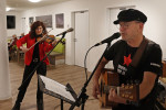 Zwei Besucher teilten ihre Eindrücke: Eine Bewohnerin erkannte Tromsø in Norwegen auf einem der Bilder und erinnerte sich an einen Urlaub dort. Sie meinte: "Wir haben unsere Lebensmittel auch selbst geräuchert und haltbar gemacht. Die schmeckten viel besser als heute." Musikalisch begleitet wurde die Veranstaltung vom Duo "Orange Moon", bestehend aus Franz Schmitz und Angela Schmitz-Buchholz, die mit ihren Liedern eine stimmungsvolle Atmosphäre schufen.
