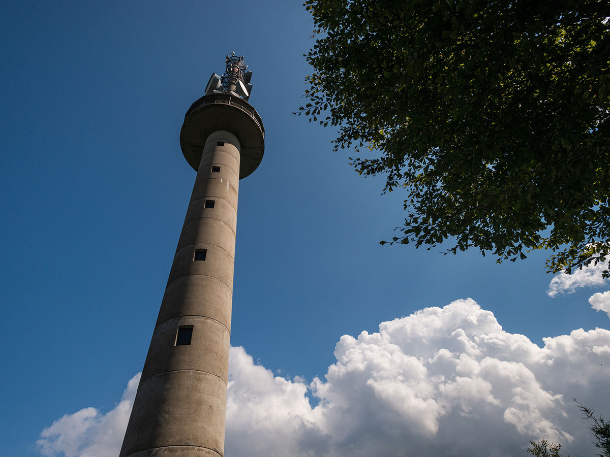 Der Wanderweg führt vom Startpunkt in Hachenburg zunächst hinaus aus der Stadt durch den Hachenburger Stadtwald und bald schon bergauf Richtung Gräbersberg. Hier liegt das erste große Highlight der Etappe: der Aussichtsturm Gräbersberg auf dem gleichnamigen 513 Meter hohen Berg bei Alpenrod. Wer die 197 Stufen zur Aussichtsplattform erklimmt, steht in 33 Metern Höhe und blickt bei gutem Wetter bis in die Eifel, den Taunus, ins Siebengebirge und sogar bis ins Sauerland und Rothaargebirge. Ringsum sind an der Brüstung Orientierungstafeln angebracht, die helfen, die fernen Berge und Landschaften einzuordnen. Der Turm selbst ist ein 73 Meter hoher Stahlbetonturm, der 1998 in nur sechs Wochen errichtet wurde und damit bereits der Nachfolger eines hölzernen Vorgängers aus dem Jahr 1932 ist, der im November 1945 durch einen Sturm zerstört wurde. Direkt am Turm lädt die Alpenroder Hütte zu einer ersten Einkehr ein.