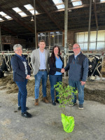 Dierdorf. Sarah Schneider, Daniela Hülpüsch und Niklas Gillessen vom Agrar-Expertenteam der Westerwald Bank besuchten den frisch gewählten Vorsitzenden des Kreisbauer- und Winzerverbandes Neuwied, Dominik Ehrenstein, auf seinem Milcherzeugungsbetrieb. Ihr Besuch diente nicht nur der Gratulation, sondern auch dazu, die Unterstützung der Bank für die regionale Landwirtschaft zu bekräftigen, besonders in Zeiten unbeständiger Rahmenbedingungen.