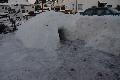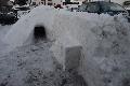 Kaum waren die Wege frei und der der riesige Schneeberg aufgetürmt, machten sie weiter. Erst eine kleine Kuhle, dann ein Loch. Fünf Stunden später einen Hohlraum: zwei Meter lang, einen Meter hoch und bis zu 1,40 Meter breit. Darin stehen kann man nicht. Aber mit ein paar Leuten kann man da schon eine gesellige Runde mit heißem Tee genießen. Stevens Kinder freuten sich auch. Eine eigene Festung aus Schnee zum Rumtoben. Das hat nicht jeder zu Hause.