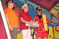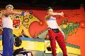 Das Freibad von Hundsangen bot dann die Kulisse für den Auftritt der Wambachlerchen. Mit schmissigen Dialogen und ihren schwungvollen Parodien drehten sie wieder einmal in ihrer unnachahmlichen Art den Scheinwerfer auf das Zeitgeschehen der kleinen und großen Welt. So schwamm eine Muslimin mit einem Ganzkörperschwimmanzug („Das ist der itzy bitzy teenie weenie Honululu Strandburkini“) im Becken. Frauke Petri („Petri Heil“) und selbst Donald Trump, angereist mit der Freiheitsstatur und Horst Seehofer drehten ihre Runden. Die fetzige Musikshow der Wambachlerchen riss das Publikum von den Stühlen. Manuel Malm und Michael Novian waren die geistigen Urheber des Spektakels.