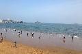 Gegen 11:30 Uhr gab es erst einmal Mittagessen in der Mensa. Dabei war bemerkenswert, dass es statt Getränken Suppe zum Essen gab, um den Flüssigkeitsbedarf zu decken. Neu war für uns auch, dass man die Hände nach dem Waschen an der Luft trocknen lässt, Handtücher sind nicht üblich. Dem folgte eine verdiente einstündige Mittagspause. Nach dieser Pause bemalten wir mit anderen chinesischen Schülern Masken der Peking-Oper, welche wir auch behalten durften. Nach den sehr imponierenden Vorträgen über die Peking-Oper sowie das Drachenbootfest hatten wir 90 Minuten Freizeit. Diese nutzen wir, um an den Strand zu gehen.