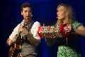 Mit Zupf- und Tasteninstrumenten in normal- und Miniaturgröße begleiteten die Beiden ihre unromantisch-besinnlichen Liebeslieder, die sich mit Treibhaus-Effekt, winterharten Palmen und dem Sehnsuchtsort Copa Cabana befassten. Das funktionierte sogar mit angesagten Akkordwechseln gemeinsam auf einer Gitarre.