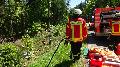 Der Mann konnte zügig befreit werden, da sich die Türen noch öffnen ließen. Er wurde notärztlich neben seinem Fahrzeug versorgt. Mit Seilen gesichert wurde er mit Hilfe der Feuerwehrleute mittels Trage die steile Böschung hinaufgetragen. Mit dem angeforderten Hubschrauber wurde er in eine Klinik geflogen.