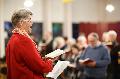 Schon der Beginn reißt die Gäste im wahrsten Wortsinn aus den Sitzen der Lutherkirche. Denn mit dem Lied „Die beste Zeit im Jahr ist mein“ eröffnet Christa Kirschbaum den Abend ausgesprochen lebhaft: „Wir singen das Stück gemeinsam, und jeder steht bei seinem Lieblingswort kurz auf!“ Ein flotter Opener, der die rund 50 Männer und Frauen fit für den folgenden musikwissenschaftlichen Exkurs macht: „,Nun freut Euch liebe Christengmein’ ist von einer Lieblingsvokabel Luthers geprägt: dem Springen“, sagt die Kirchenmusikerin und erklärt, dass dieses Wort nicht nur im Text vorkommt. „Auch die Melodie vollführt etliche Sprünge.“