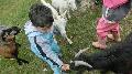 Anschließend setzte sich die Gruppe zum Hühnermobil in Bewegung. Hier leben glückliche Hühner, die ihr eigenes „Wohnmobil“ haben, mit dem sie von einer saftigen Wiese zur anderen gefahren werden. Diese Eier werden besonders gut schmecken. Das erste Mal ein Huhn streicheln war ein Erlebnis. Im Anschluss wurden die Tiere dann größer. Kühe, Schweine und Esel auf der Weide und eine Kuh mit Kälbchen im Stall konnten angeschaut werden. Ziemlich groß ist so eine Kuh und eine raue Zunge hat sie auch. Selbst die Bullen ließen sich von den Kindern die Stirn kraulen, nachdem sie leckeres Futter von ihnen erhalten hatten. Das Melken wurde an einer Holzkuh geübt. Hier war Fingerspitzengefühl erforderlich um „Milch“ zu erhalten. Kuscheliger und ganz hautnah begegneten die Kinder den Kaninchen, Ziegen, Wachteln und Gänsen im Streichelzoo.