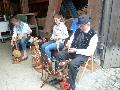 Schon am Vormittag gab es viele Besucher, aber als am Nachmittag der Regen etwas nachgelassen hatte, kamen sie in Scharen. Besucher aller Altersklassen staunten nicht wenig, als die Akteure in alten Trachten fleißig bei der Arbeit waren. Immer wieder faszinierte die Geschicklichkeit, mit der die „Könner ihres Fachs“ auch heute noch im Hobbybereich solche Ergebnisse erzielten. Fäden an der hängenden Spindel zu fertigen erfordert nicht weniger Geschick als ein altes oder neueres Spinnrad in Bewegung zu setzen. Zuschauen ist leicht, nachmachen erfordert nicht nur Geschick, sondern vor allen Dingen Ausdauer. Das war den Blicken der vielen Kinder zu entnehmen, die mit Eltern oder Großeltern einen Rundgang durchs Museum machten. repa