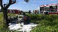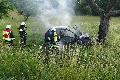 PKW prallt gegen Baum und fängt Feuer - ein Schwerverletzter