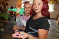 Viele Dauercamper erwarten das Team um Leiterin Ingrid Schäfer jedes Jahr mit Ungeduld, doch auch Neuankömmlinge lassen sich von dem attraktiven Angebot leicht einladen. Die Mitarbeiter bieten immer einen ähnlichen Ablauf. Um 11 Uhr wird gebastelt, um 15 Uhr stehen an einigen Nachmittagen Spiele oder ein erneutes Kreativangebot auf dem Programm (an diesem Nachmittag werden Jutetaschen individuell bedruckt) und um 19 Uhr gibt es das „Betthupferl“. Dabei handelt es sich um eine Geschichte, ein Abendgebet und ein Lied und für jedes Kind eine kleine Süßigkeit aus der „Schatzkiste“. „Das ist das Highlight des Tages“, berichtet Barbara Otto lachend, „die Kinder freuen sich immer riesig über das kleine Bonbon oder Gummibärtütchen und bewachen die „Schatzkiste“ während des kleinen abendlichen Programms mit Argusaugen.“