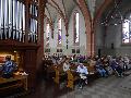 Beim abschließenden „Großer Gott wir loben Dich“ als von den Seniorinnen und Senioren erklatschten Zugabe, schien es, als wollten beide Orgeln mit ihrem mächtigen Klang den Gästen zurufen: Ihr seid im nächsten Jahr zum bereits 4. Kirchenliederwunschkonzert wieder willkommen. Ralf Cieslik wollte dem nicht widersprechen und sagte spontan zu. Danach stellte der Organist nach verklingen des letzten Konzerttones die auf majestätische acht Meter Höhe und vier Klaviaturen erweiterte Nelson-Orgel vor: „Mit einem Kabel auf dem neuesten Stand der Technik sind die beiden Orgeln miteinander verbunden und so von einem Platz aus spielbar“, so Cieslik.