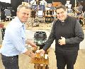 Am Kirmesmontag war es dann der schon traditionelle Laurentiusmarkt, der erste Besucher in den Ort lockte. Über 30 Stände, so einer der Organisatoren, boten neben den ersten herbstlichen Kleidungsstücken oder Top-modernen T-Shirts auch erstmalig Obst und Gemüse an. Im Festzelt gab es dann kurz vor der Mittagszeit ein erstes Festbier. Hierfür zeichneten Kaplan Gerrit Engelmann und Bürgermeister Thomas Weidenfeller verantwortlich. Zu den Klängen der Jubiläums-Kapelle wurden die ersten Gläser nach den erfolgreichen Schlägen gefüllt.