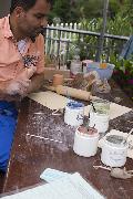 Einige junge Männer präsentierten eine innovative Idee: Man konnte seine Hand in Wachs abgießen und bunt gestalten. Benötigt wurden dazu Vaseline, kaltes Wasser, transparentes heißes Wachs und verschieden eingefärbtes flüssiges Wachs. Das Ergebnis waren individuelle plastische Handabgüsse.
