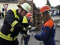 Wallmerod. Selbst ein drohendes Unwetter hielt die Jungen und Mädchen der Verbandsgemeinde-Jugendfeuerwehren nicht davon ab, ihre Jahresabschlussübung abzuhalten. Als „Brandobjekt“ wurde das am Ortsrand von Bilkheim befindliche Bauunternehmen Hannappel ausgesucht. „Alle Jugendfeuerwehren der Verbandsgemeinde nehmen teil“, wusste im Vorfeld Verbandsgemeinde-Jugendfeuerwehrwart Ansgar Schmidt zu berichten. Und schon kurz nach Ertönen der Sirenen fuhren die Jugendwehren aus Bilkheim, Weroth, Ahrbach, Hahn am See/Elbingen, Meudt, Herschbach, Dreikirchen, Steinefrenz, Wallmerod und Hundsangen am „Brandobjekt“ vor. In diesem Jahr waren es fast 80 Jungen und Mädchen die sich der immer Ende September stattfindenden Übung anschlossen. Normal sind fast 130 Jugendliche in den Jugendwehren zu finden. Doch gleichzeitig fanden Prüfungen für die Jugendlichen statt, die auf dem Sprung zur Einsatzwehr sind.
