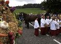Insgesamt waren es in diesem Jahr 130 Pferde, die liebevoll gestriegelt und zum Teil mit bunten Feldblumen geschmückt, gesattelt wurden. Wunderschön anzuschauen waren auch die blitzblanken zwölf Kutschen, die von hunderten von Besuchern, die am Straßenrand die Prozession beobachteten, bewundert wurden.
