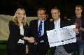 Danach wurde „zur Tat geschritten“, sprich offizielle Übergabe des 20x 40 Meter großen Kunstrasen-Spielfeldes. Von Fackeln erleuchtet ging der Weg zum Sportfeld. Die Westerwald Bank überreichte einen 3.000-Euro Spendenscheck und Wolfgang Hörter vom Fußballkreis Westerwald/Sieg einen Fußball, der gleich im Anschluss zum Einsatz kam. Dann der große Moment: Nach einleitenden Worten von Ralf Esser durchschnitten zwei Fußballerinnen das rot-weiße Band. Das Kunstrasen-Kleinspielfeld in Salz war seiner Bestimmung übergeben. Danach rollte der Ball. Jugendspieler begannen, danach fand der Auftritt der „Legends of FSG“ statt.