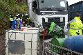 Nentershausen. Da sich dieser Abschnitt in der Baustelle in Fahrtrichtung Frankfurt befand, bildete sich über mehrere Stunden ein Stau von neun Kilometern Länge. Als nun das Abschleppunternehmen den LKW, der Mineralwasser geladen hatte, wieder aus dieser Lage befreien wollte, wurde festgestellt, dass der Tank ein Leck hatte und große Mengen an Dieselkraftstoff ins Erdreich drangen.
