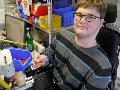 Damit beide Seiten profitieren, lässt Mathias Bohn sich einiges einfallen. Für Marius Neeb, der nicht im Stehen und an komplexen Anlagen arbeiten kann, reaktivierte er eine kleine CNC-Maschine und ließ einen passenden Tisch fertigen. Die Agentur für Arbeit Montabaur schickte ihren technischen Berater in den Oberwesterwald und bezahlte die Konstruktion. Der Arbeitsplatz des Rollifahrers ist direkt mit dem PC des Kollegen verbunden, der die EDV-technische Vorbereitung macht. Denn Marius Neeb graviert viele unterschiedliche Werkstücke – angefangen von Schlüsselanhängern über Garderobenmarken bis hin zu den Metallplaketten, die die Schläuche, Kabel und Versorgungsleitungen großer Produktionsanlagen kennzeichnen.