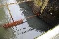 Vor dem Auslauf war seinerzeit ein Gitter angebracht worden, hauptsächlich zu verhindern, dass Treibgut vor der Stauklappe hängt und eventuell die Mechanik sperrt oder etwas verkeilt. Unter Wasser, von außen nicht zu sehen, ist ein 40 Zentimeter hoher Durchlauf zwischen dem Gitter und der Grundauslassmauer. Die besorgten Spaziergänger am Wiesensee erkannten immer nur, dass Fische im Auslauf eingesperrt seien. Jetzt haben die Mitarbeiter zwei der drei Gitter entfernt. Der Spaziergänger und Naturbeobachter sieht von weitem, dass kein Hindernis die Schwimmbahnen und –becken trennt.