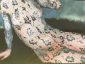 Erst als Sophie von Stillfried in ihrer malerischen Auseinandersetzung die Tätowierung als Stilmittel für sich gefunden hat, wird sie durch Zufall auf die Gemeinsamkeit mit ihrem Vorfahren aufmerksam. Die Bildwelten der Körperkunst faszinieren Sophie von Stillfried. Sie nutzt die Körperübermalungen als malerisches Element wie eine zweite Haut, wie ein Netz, das sich großflächige über Oberkörper, Handrücken oder Finger legt.